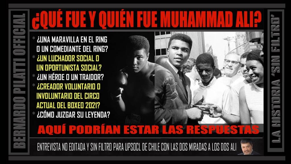 Es posible que algunas respuestas se puedan encontrar en esta entrevista sin filtro, sin cortes y sin edición para UPSOCL de Chile, exitoso medio digital latinoamericano para el que suelo realizar aportes de boxeo en su canal de videos ‘Cracks’. La presente es una entrevista con el reportero digital Oscar Castro sobre la convivencia de los dos Ali (el boxeador y el activista) y la influencia de uno sobre el otro.