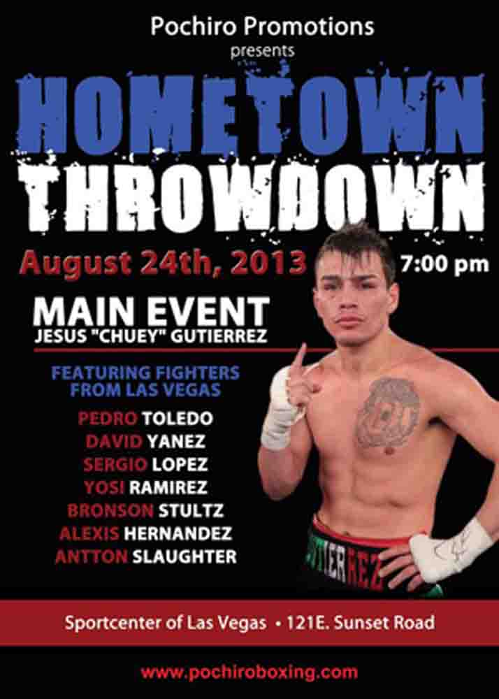 La pelea estelar estará a cargo de Jesús Gutiérrez que ya consta de una planilla de 10 victorias, aunque en una de esas peleas contrato a un nutricionista que en vez de ayudarlo lo amoló porque le dio en sus condimentos sustancias no permitidas por la Comisión y ni modo no tiene la culpa el indio sino el que lo hace compadre y Chuy tomo responsabilidad en el asunto.
