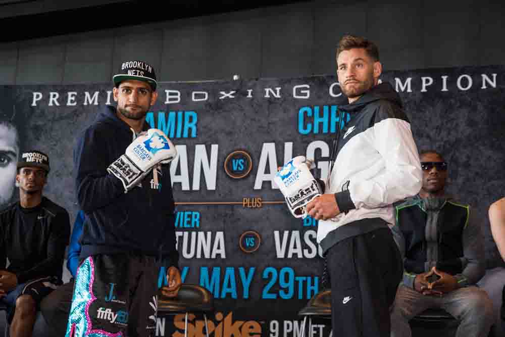 Este fin de semana, entre el viernes 29 y el sábado 30 de mayo, y desde diferentes puntos del orbe, veremos un conjunto de combates en los que se destaca, el enfrentamiento entre el británico de origen paquistaní, Amir “King” Khan, contra el estadounidense Chris Algieri, en una pelea programada a 12 asaltos, y que se realizará el viernes 29 en el Barclays Center de Brooklyn, New York, USA.
