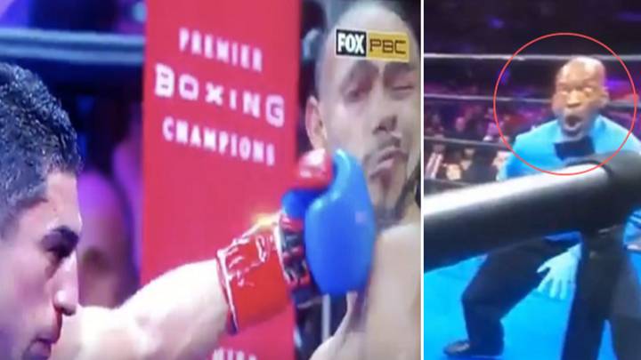 El referee que más disfruta las peleas y desde una privilegiada vista lo volvió a hacer. Con sus gestos graciosos reaccionó al castigo que le estaba proporcionando Josesito Lopez a Keith Thurman.