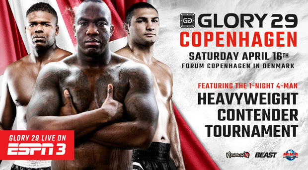 New York, NY – GLORY, the world’s premier kickboxing league, today announced three competitors to participate in the one-night, four-man Heavyweight Contender Tournament at GLORY 29 Copenhagen and three bouts for GLORY SuperFight Series Copenhagen, both scheduled for April 16 from Forum Copenhagen in Denmark.