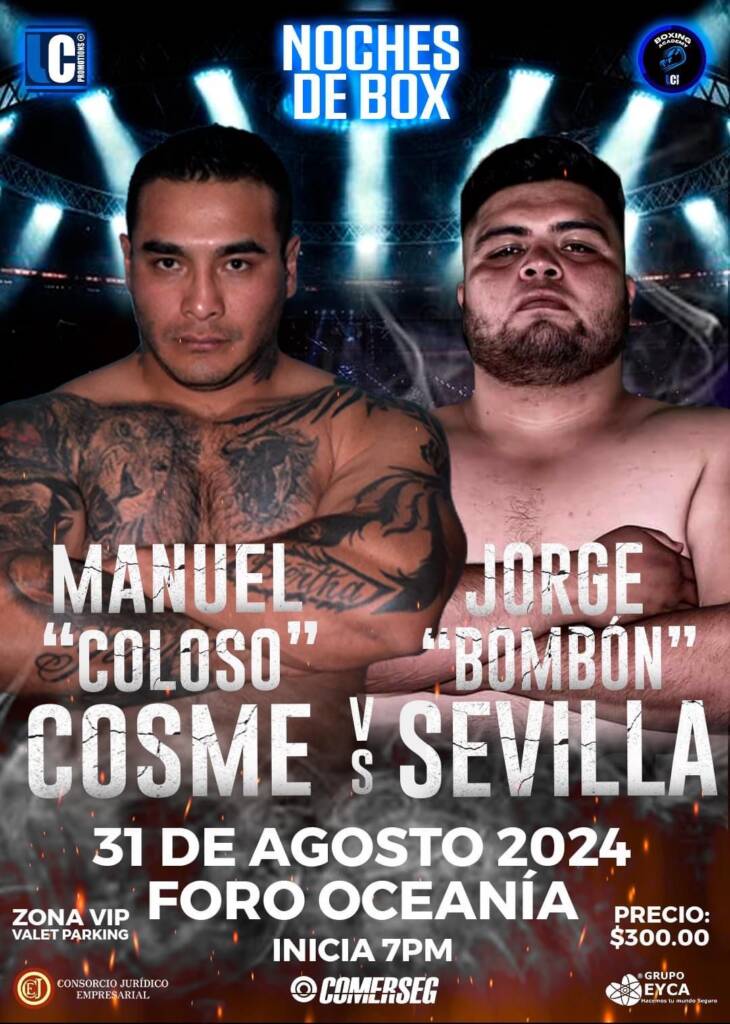 El ensogado que se ubicará el próximo sábado 31 de agosto en el Foro Oceania Show Center de la capital mexicana, se estremecerá al estar frente a frente dos auténticas moles, al medirse el demoledor Manuel “Coloso” Cosme y Jorge Luis Fernández, ocho rounds dentro de la división de peso completo.
