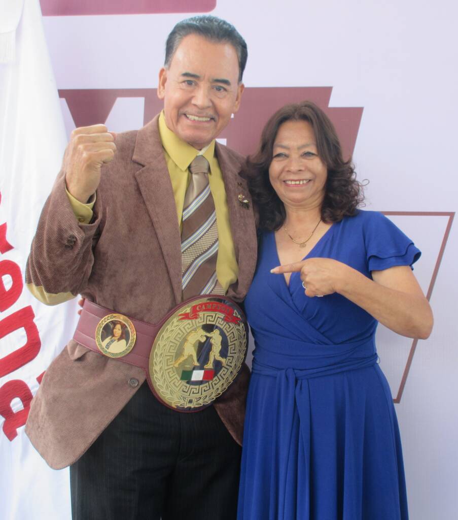 En la ceremonia de su Primer Informe de Gobierno, la Diputada entregó un cinturón conmemorativo del evento al réferi internacional, así como al Director General del ISSSTE, Doctor Pedro Zenteno, personalidades que fueron tratados con muchos elogios y aplausos del público que hizo gran presencia en Galerias Ixtapaluca.