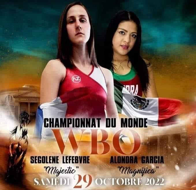 La boxeadora jalisciense Alondra “Magnífica” García buscará recuperar su condición de campeona del mundo, y para ello, se meterá a territorio francés para encarar a la local Segolene “Majestuc” Lefebvre.