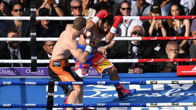 Jeff Horn quien entró al ring bajo las notas del tema TNT y el coro desgargantado de muchos de los 55 mil fanáticos en audiencia que quedaron contentos de que su paisano colara su nombre en el mapa del reconocimiento con un triunfo ante Manny Pacquiao en una pelea de campeonato welter OMB transmitida por ESPN.