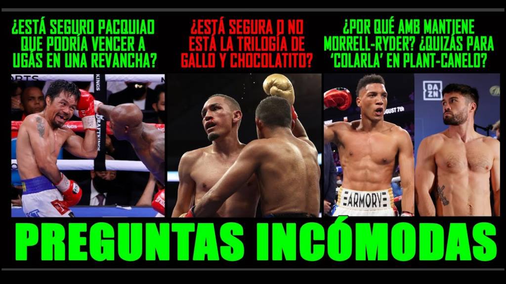 Preguntas incómodas tenemos en este video. Pacquiao habla de revancha con Ugás y tiene explicación. La trilogía Chocolatito-Gallo está confirmada en un 80%, pero cuidado, con ese 20%. AMB mantiene Morrell-Ryder a contramano del sentido común y tiene explicación.