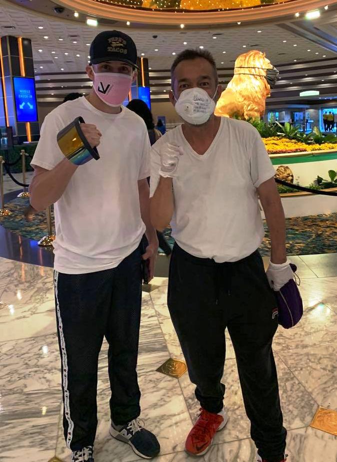 A los reporteros del mamporro, hoy en día, por motivo de salud no se nos permite mucho acceso a entrevistar a los participantes como se acostumbra, porque los tienen alejados del contacto humano para que no se vayan a contagiar del Covid-19 en vísperas de compromiso de puños, como ya ha pasado en otros eventos a puerta cerrada. Pero como todo guerrero de la pluma y el papel seguimos haciendo nuestra labor periodística lo mejor que se puede, y este tarde fui al MGM para hablar con Jayson Vélez, el cual tiene una cartulina profesional de 29-6-1, con (21 anestesias), y nos consta que siempre está listo para los enfrentamientos de impacto, y con poco tiempo para una preparación adecuada que culminó en el gimnasio Monterrey en la Isla del Encanto con miras a una pelea de Top Rank que montará cuadrilátero en La Burbuja del MGM el próximo martes 21 de julio en función televisada por ESPN a eso de las Vélez tendrá un difícil compromiso ante Oscar Valdez, orgullo de Nogales Sonora, quien se navega invicto con 27-0 (21cloroformos), pero esta será su segunda pelea en superpluma y es donde el boricua dice tener la gran ventaja, por ser el más alto, y su logística es que se haga realidad la leyenda de que cuando dos guerreros a prueba de fuego se enfrentan en un ring, el más grande sale adelante, y sin duda la ventaja de 2 ½ pulgadas en tamaño y 2 pulgadas en alcance lo motivan a la esperanza de avanzar para una pelea titular si logra poner mancha en los palmares de “Fierro”, y cuenta a los medios de prensa que será una meta sin tregua y agrega al respecto: “Yo sé que a Valdez es un tremendo boxeador que le gusta la guerra y será un choque de poder donde yo seré el más grande y esa es mi confianza en que saldré triunfador”. El Puertorriqueño subirá al ring con el color rosa, en apoyo al cáncer de mama, y una de sus patrocinadoras en Las Vegas es la señora Martha Ceja, propietaria de Pepe’s Tacos Boulder (y el que está por la Rainbow), la cual le desea toda la suerte del mundo en esta contienda. Jayson de agradecimiento le hizo un video y está dispuesto a mostrar el logo de la empresaria durante segmentos en el combate, también el cubre-bocas que está muy de moda en estos tiempos de incertidumbre por la pandemia que sigue sin bajar bandera en lo que se refiere a contagios masivos por doquier, pero primero Dios esto pasara y será como una pesadilla pasajera. Vélez con su amabilidad de siempre comento a los medios de prensa en su terruño: “Si hubo complicaciones con los entrenamientos en casa, pero seguimos los protocolos y las medidas de salubridad en esta nueva normalidad de vida y estoy confiado de que se vera el va valor de mis quilates arriba del ring”.