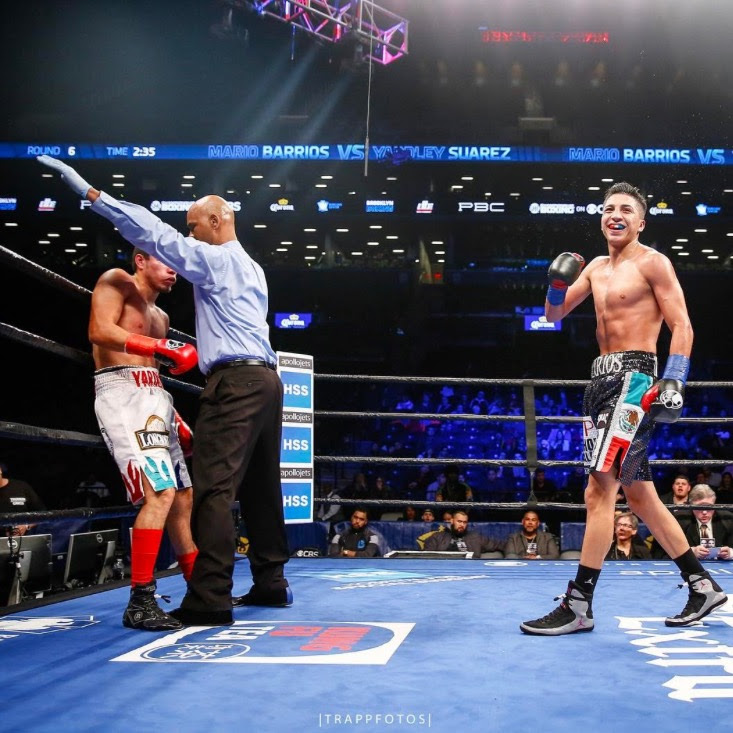 BROOKLYN, NY (March 5, 2017) – Last night at the Barclays Center in New York, San Antonio native, Mario Barrios (18-0, 10 KOs), remained undefeated with a stellar performance, defeated his opponent Yardley Suarez (20-7, 11 KOs) by sixth round TKO.
