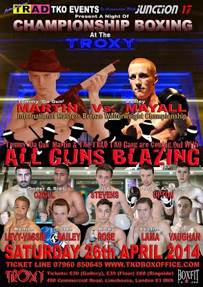 LONDON – After the incredibly successful double title fight headed ‘FAST & FURIOUS’ event last month, TRAD TKO’s head honcho Johnny Eames has wasted no time in putting together his second show of the year, ALL GUNS BLAZING, which will take place at the Troxy in Limehouse, London on Saturday 26th April 2014.