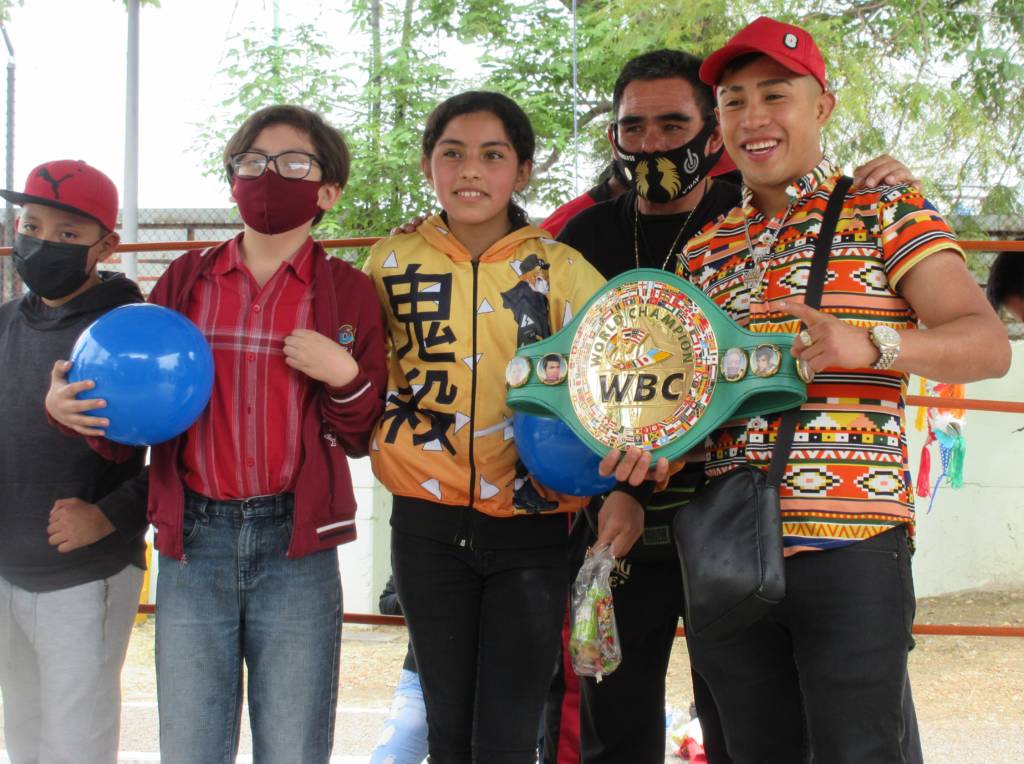 El campeón universal del WBC, Julio César Martínez en un evento de fin de año en el gimnasio “Chale” de la colonia Defensores de la República.