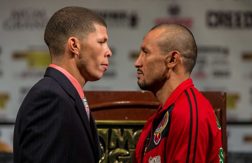 Román “Rocky” Martínez y Orlando “Siri” Salido se vieron frente a frente esta tarde, sólo dos días antes de su esperada revancha de este sábado, 12 de septiembre, en el MGM Grand Garden Arena de Las Vegas como coestelar del programa estelarizado por el combate entre Floyd Mayweather y Andre Berto, que será transmitido por “Showtime Pay Per View”.