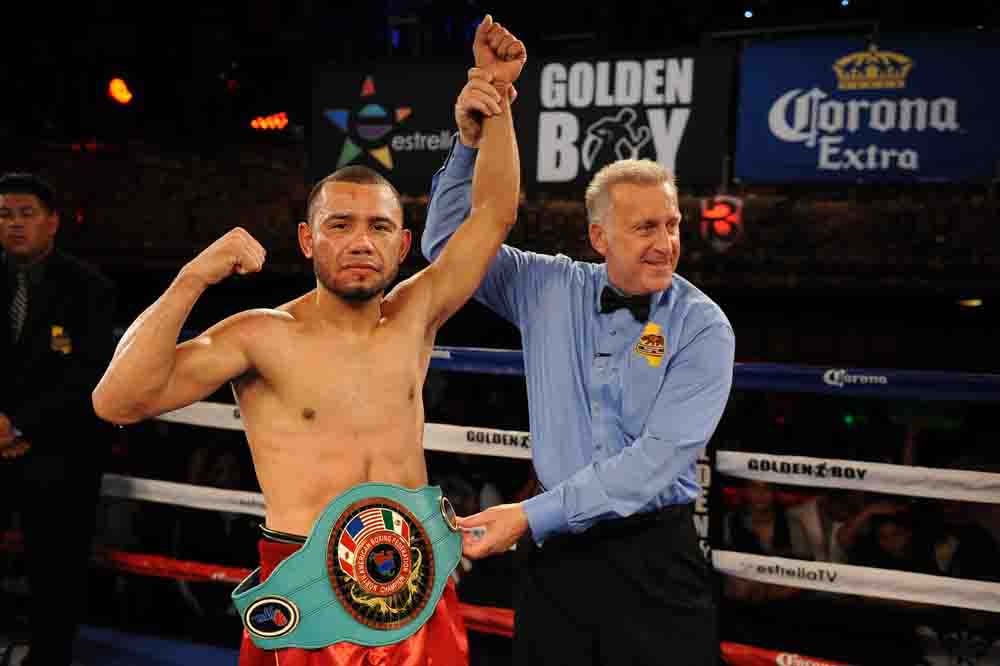 LOS ANGELES (Sept. 18, 2015) – The September 18 special edition of LA FIGHT CLUB on Boxeo Estelar on Estrella TV was a celebration of Mexican Independence Day as Marvin “Cachorro” Quintero (28-6, 24 KOs) secured a technical knockout victory over Jeffery Fontanez (16-2, 12 KOs) in the main event at the Belasco Theater for the vacant NABF Lightweight Title.