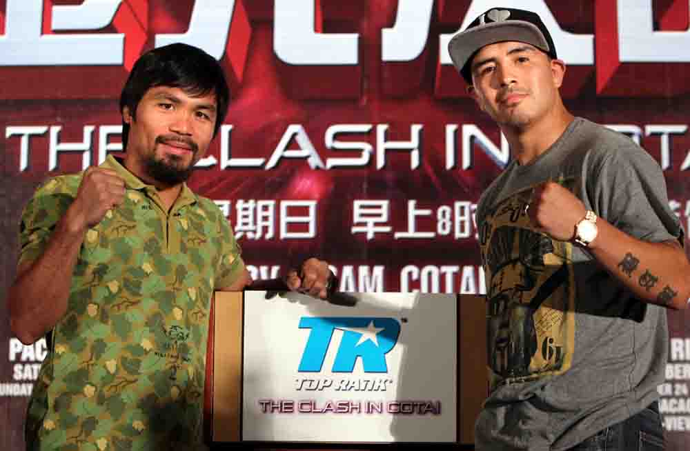 ¿Por qué se fueron a China para boxear el “clásico” Ríos-Manny? Aunque “Paqui” dijo que “aquí le quitan mucho por impuestos”, todo el mundo debe saber dos cosas: que ni el lugar ni el contrario los puede escoger un boxeador, tampoco su trainer ni, en esta era, su manager, sino el promotor, en el caso del filipino, quizás Bob Arum es su verdadero manejador, pero delegó en otro como fachada, porque el promotaje no puede ser apoderado, entonces ¿A qué se debió esa acción contra Las Vegas? En el rejuego de los nombrecitos de las “citas” como gancho de atracción televisiva, esta se llama “TOTAL CLASH”o “choque total”, quiere decir sin administraciones de ningún tipo, todo por la bronca, nada “in hold”.