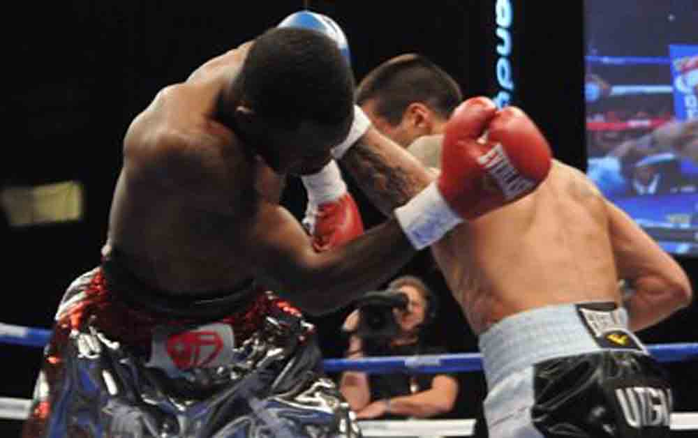 En la antesala Selcuk Aydin -izquierda- nunca pudo detener el torbellino de guantadas que le lanzó Jesús Soto Karass -derecha-, quien afirma que aún trae mucho fuego en la sangre, y desea seguir su curso victorioso hasta llegar al punto de abrazar un título del mundo en categoría superwélter.