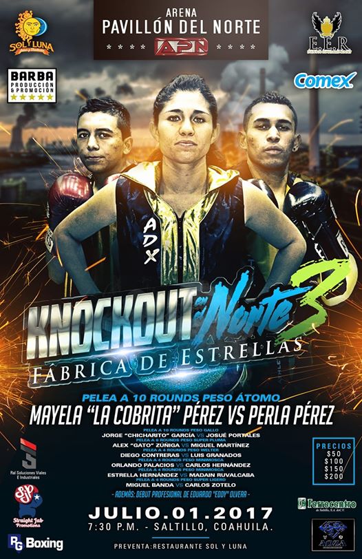 En el duelo Saltillo vs. Ciudad de México, Mayela Pérez se medirá a Perla Pérez, diez rounds en la escala de peso átomo, y que será el platillo principal de la velada que organiza Eventos Especiales Rocky de Héctor Sánchez, RG Boxing (Ricardo García Ninomoya), y Barba Producción & Promoción (Rodrigo Barba), que contará con ocho interesantes combates más.