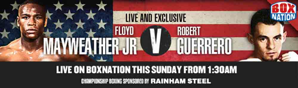 Mayweather v Guerrero is live and exclusive on BoxNation (Sky Ch. 347/Virgin Ch. 546) with coverage starting on Sunday morning from 1.30am. Join atwww.boxnation.com