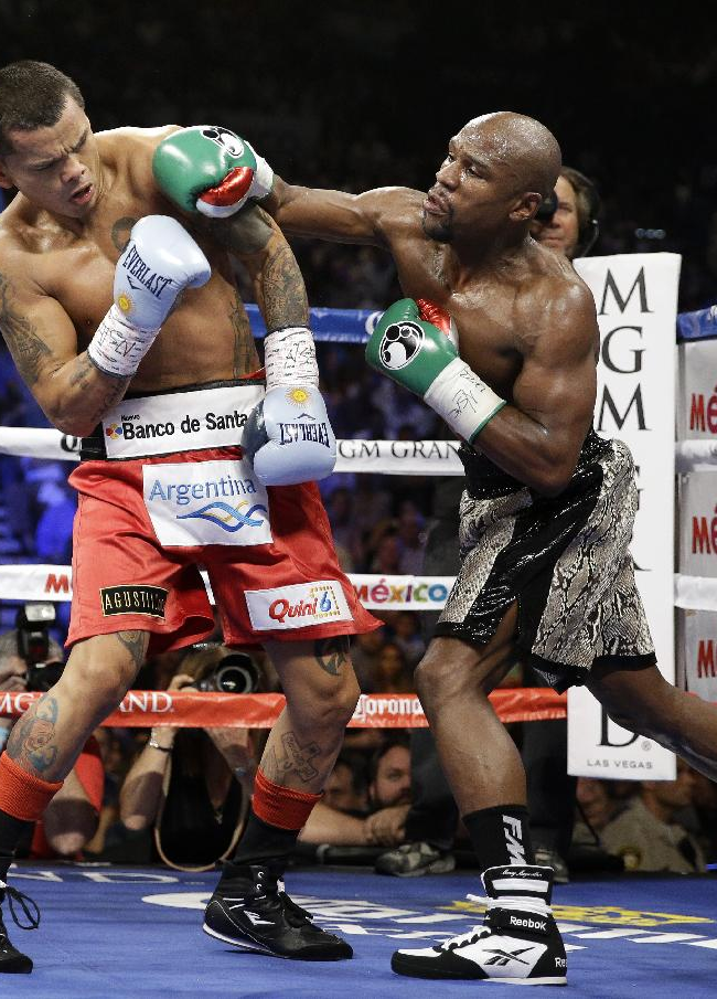 El estadounidense Floyd Mayweather, Junior, campeón mundial peso wélter (A.M.B.-C.M.B.) retuvo su título por desición unánime (115-112, 116-111 y 116-111) ante el argentino Marcos ‘El Chino’ Maidana. En el encuentro el campeón mostró su gran velocidad de manos, piernas y un jab incesante donde mantuvo a Maidana fuera de su alcance.