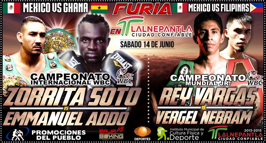 La velada será una megaproducción de Promociones del Pueblo y Baja Boxing; para la que el ayuntamiento de Tlalnepantla de Baz está prestando todas las facilidades para la organización y difusión de este gran evento de corte internacional que seguramente disfrutarán todos los aficionados que se den cita el 14 de junio.