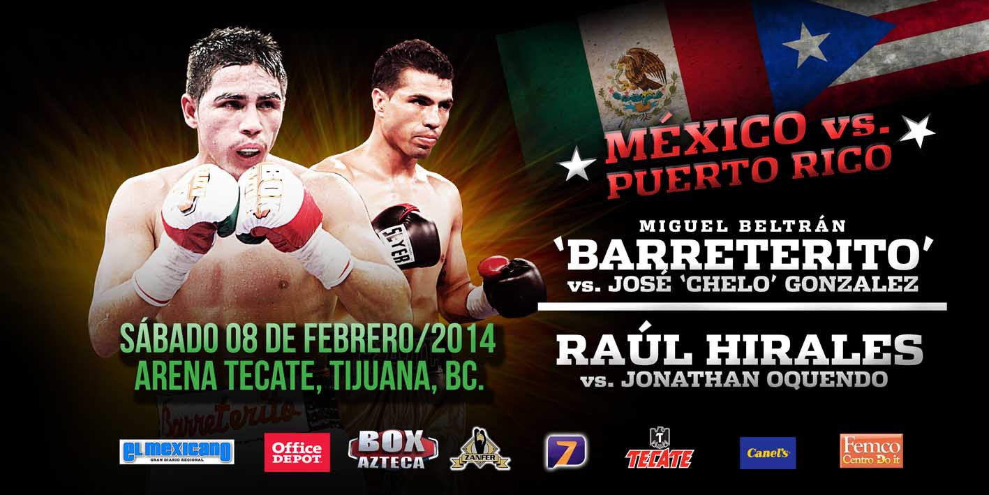 La contienda entre Hirales y Oquendo forma parte de una “invasión boricua” en Tijuana, pues en la pelea estelar, el primer “Campeón Azteca” de la historia y dos veces contendiente a campeonato del mundo, el sinaloense Miguel “Barreterito” Beltrán (28-2-0, 18 ko’s), se enfrentará a 10 rounds en peso Ligero al noqueador boricua José “Chelo” González (22-1-0, 17 ko’s), que en su más reciente pelea, en mayo de 2013, perdió su marca invicta al perder por abandono en el noveno round ante Ricky Burns en disputa del campeonato mundial de peso Ligero OMB. En esa pelea, realizada en Glasgow, Escocia, González llevaba ventaja de 87-84 en las tarjetas de los tres jueces, cuando tuvo que decidir no continuar en la pelea por haberse lesionado la muñeca.