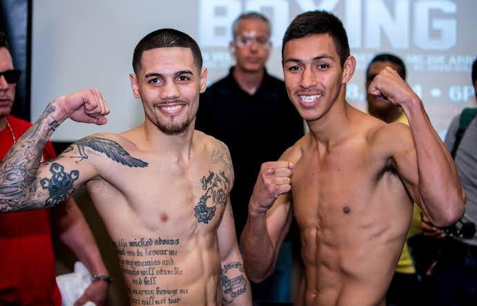 En la pelea semiestelar el fajardeño McJoe Arroyo (izquierda) venció por decisión unánime (79-73, 79-73 y 80-72) al cagüeño David Quijano (derecha), quien aun en la derrota hizo una demostración de coraje y mantuvo una presión constante ante Arroyo quien tuvo que recurrir a su boxeo técnico para obtener el triunfo.