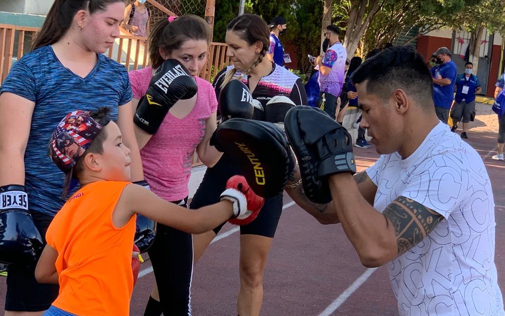 El valeroso pugilista mexicano Miguel ‘Micky’ Román, siempre en contacto con los aficionados asistió a una activación masiva de boxeo con niños y jóvenes fronterizos organizada por el Instituto Municipal del Deporte de Ciudad Juárez.