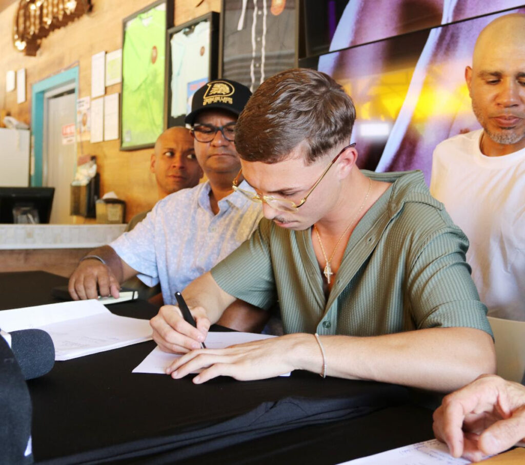 El joven boxeador es representado por la firma De León Boxing Management, bajo la dirección del reconocido entrenador y manejador de campeones, Juan De León. La firma del contrato marca un paso importante en la carrera profesional de “El Eléctrico”, quien busca dejar huella en el mundo del boxeo profesional.