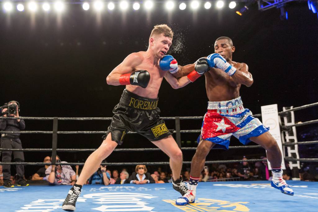 Ante una buena asistencia de cubanos que lo apoyaron como debe ser, el zurdo campeón superwelter de la OMB y de la AMB, que empezó lento pero con fortaleza premonitoria a pesar de eso, tumbó al judío en el 4to round con una combinación de swing de derecha y un bonito upper, que afeitó el estómago del neoyorquino hasta que se estrelló en la parte derecha de su mandíbula.