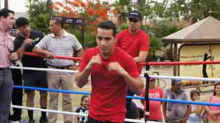 Los protagonistas de la gran velada boxística realizaron un entrenamiento público a los aficionados que se dieron cita en el Parque Sinaloa de Los Mochis, Sinaloa ante un gran ambiente.