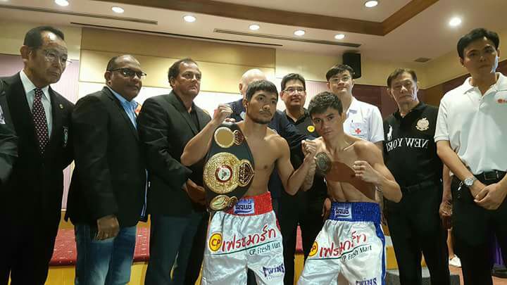 Thammanoon Niyomtrong (15-0, 7KO) y Rey Loreto (23-13, 15KO) cumplieron en la ceremonia de pesaje que se celebró en Chunburi, Tailandia y ambos quedaron listos para su pelea por la faja mundial de peso minimo de la Asociación Mundial de Boxeo (AMB).