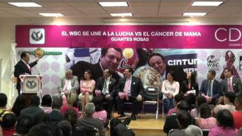 En rueda de prensa, el titular de la dependencia capitalina, Armando Ahued y el presidente del CMB, Mauricio Sulaimán, presentaron un guante rosa de Cleto Reyes, que será utilizado en las peleas efectuadas en octubre, mes de la lucha contra el cáncer de seno.
