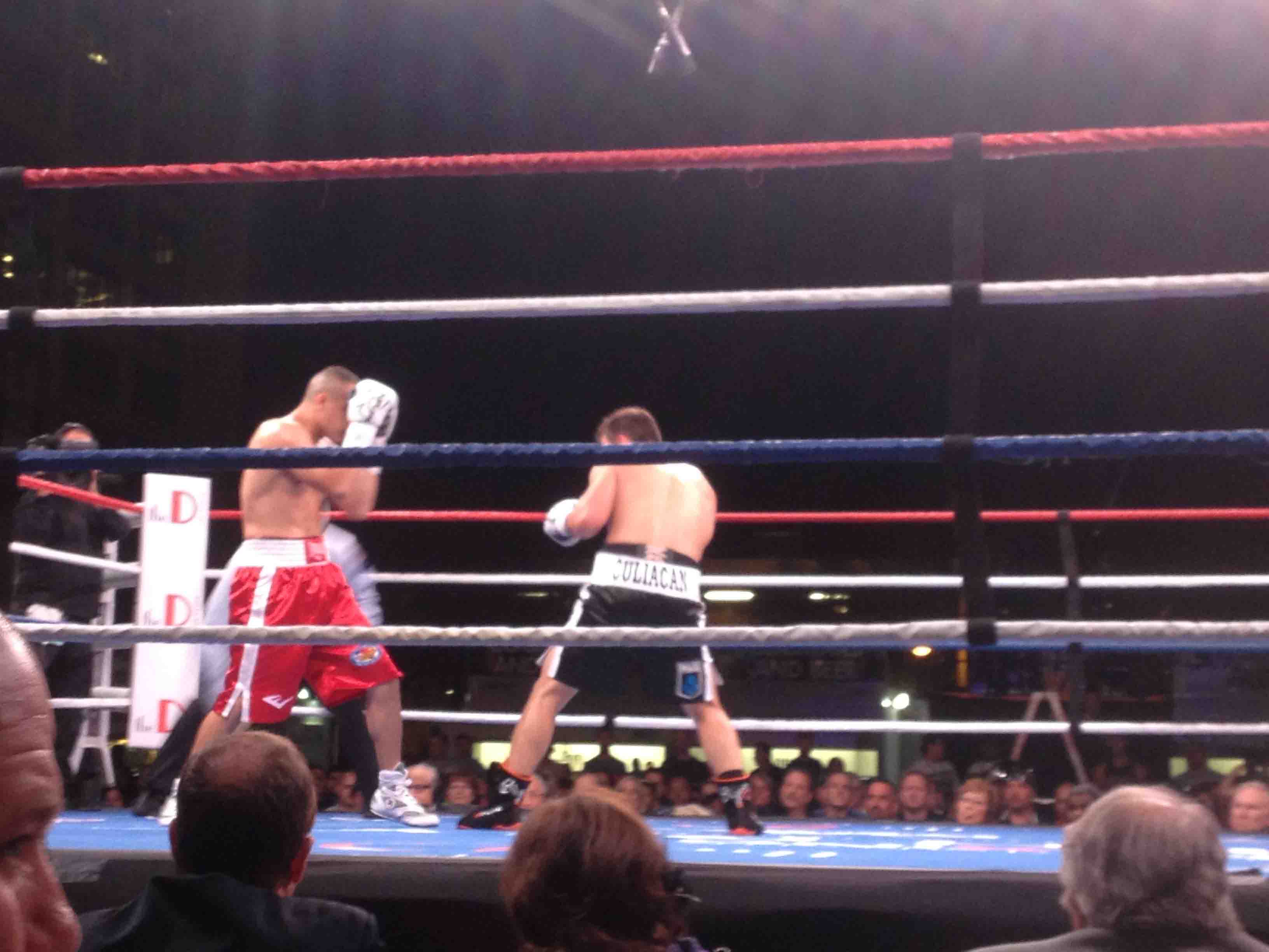 libre la raza se alboroto cuando se menciono la llegada del “Huracán de Culiacán” quien empezó lento ante el ataque de Hernández que no se anduvo por las ramas y tiraba a diestra y siniestra a conciencia de que no era el favorito de nadie en Las Vegas.