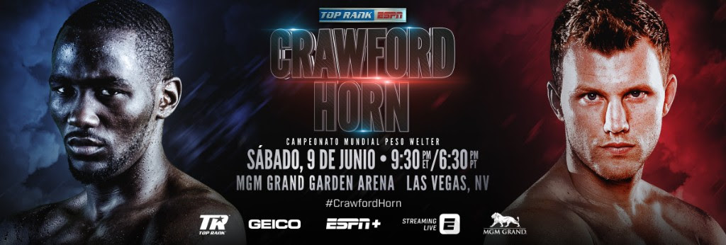 Para Horn (18-0-1, 12 KOs), esta será su segunda defensa del título que le arrebató originalmente al legendario Super Campeón OMB, Manny Pacquiao. Crawford (32-0-0, 23 KOs) buscará coronarse campeón mundial OMB en una tercera división.