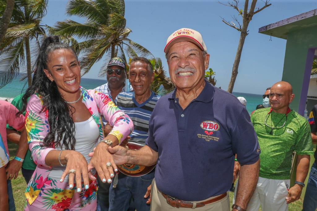 Arecibo, PUERTO RICO – Amanda Serrano, considerada por muchos como la boxeadora más destacada hoy día, fue sorprendida por la Organización Mundial de Boxeo (OMB) y su presidente, el licenciado Francisco Valcárcel con una majestuosa sortija de brillantes en emotiva actividad frente a varios campeones y ex campeones mundiales puertorriqueños y otros destacados púgiles de la actualidad.