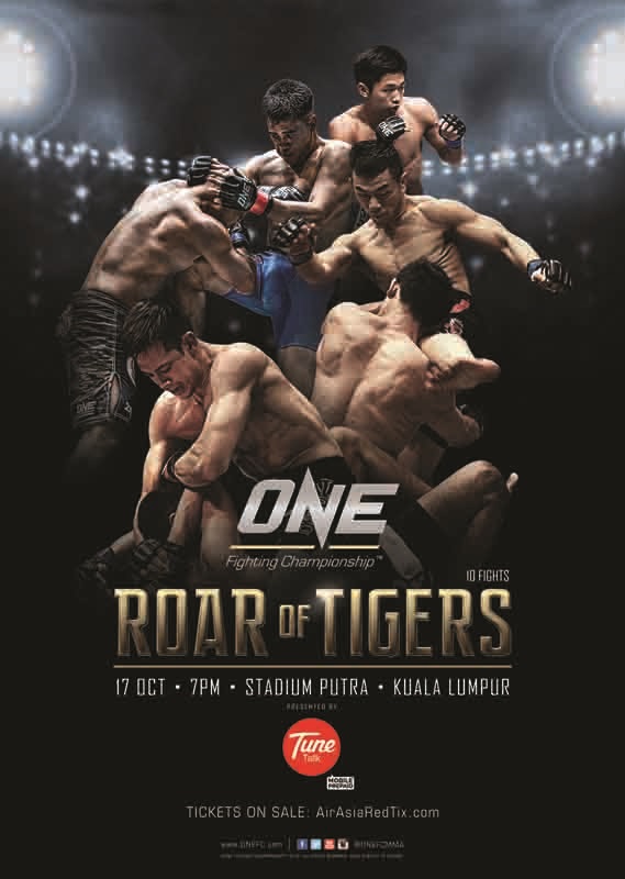 ONEFC_Roar_of_tigers9 September 2014 – Kuala Lumpur: Asia’s largest mixed martial arts organization with a 90% market share, ONE Fighting Championship™ (ONE FC), powered by Tune Talk, returns to Kuala Lumpur, Malaysia, for another blockbuster event on 17 October 2014 at the historic Stadium Putra. The fight card will feature a main event clash between two top featherweights in Marat Gafurov and Rob Lisita. Malaysia’s Ev Ting meets Philippines’ Edward Kelly in the co-main event. A bout between Singapore’s Stephen Langdown and Malaysia’s Raymond Tan has also been added to the card.