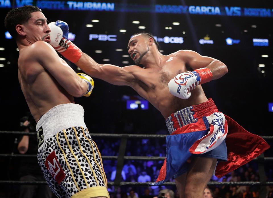 Cuando los ojos del mundo están enfocados en la pelea épica del 6 de mayo entre Saúl Álvarez contra JC Junior, se estructuró una función de unificación welter entre dos gladiadores invictos que no se andan por las ramas y fueron Keith Thurman quien expuso su diadema AMB contra Danny Garcia quien representó el CMB, la sede de este histórico combate fue en el Barclays Center de la ciudad de los rascacielos ante una audiencia récord de 16,500 fanáticos y otros miles en la televisión abierta de CBS por cortesía de la empresa Premier Boxing Champions en asociación con Showtime el 5 de marzo.
