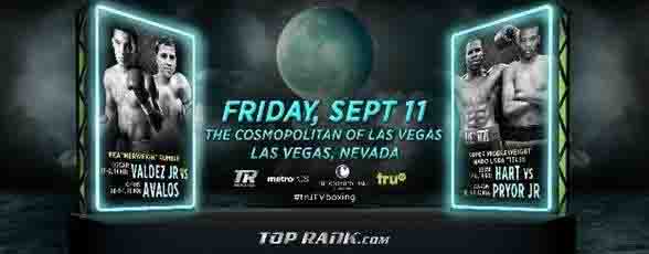 En el primer combate televisado Hart expondrá sus coronas de peso supermediano de la Organización de Boxeo de Norte America (NABO) y de la Asociación de Boxeo de Estados Unidos (USBA) contra Pryor y en el duelo estelar Valdez se enfrentara a Avalos en peso pluma. Los dos combates son a diez rounds.