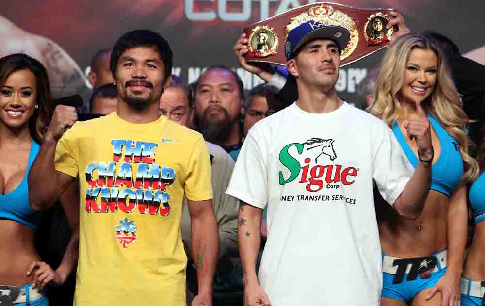 Roach ha prometido acabar con el chicano en menos de 4 asaltos, aunque el filipino no ha noqueado a nadie desde que lo hizo con Miguel Cotto hace 4 años.