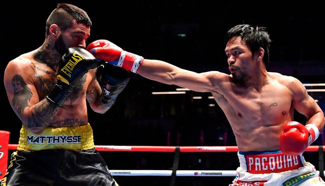 Pacquiao no pelea en territorio estadounidense desde noviembre de 2016, cuando derrotó al mexicoestadounidense Jessie Vargas en el Thomas & Mack Center de Las Vegas por el título welter de la Organización Mundial de Boxeo, que perdió luego ante Jeff Horn en Australia. En su último combate, Manny destronó al argentino Lucas Matthysse como campeón Welter de la Asociación Mundial de Boxeo.