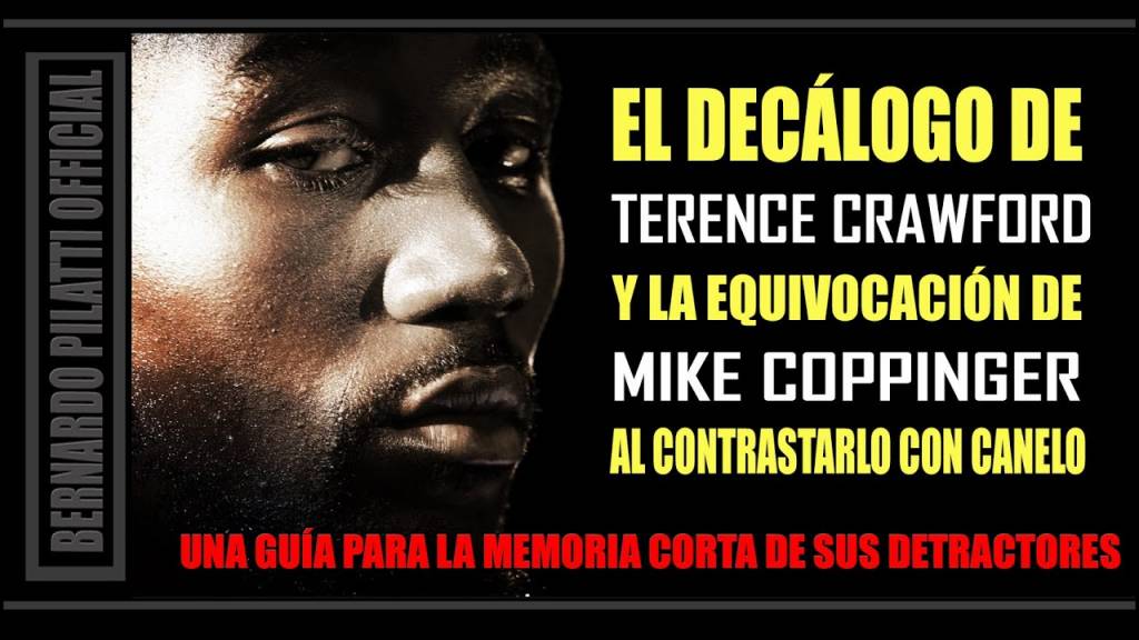 Al mismo tiempo, les presentamos lo que denominamos como ‘El decálogo de Terence Crawford”. Son diez de las infinitas preguntas que todo ‘comunicólogo’ de boxeo debe realizarse cada vez que elija pasar su tiempo desconociendo las virtudes boxísticas de Crawford, cuestionando los méritos de Crawford, cuestionando los rivales enfrentados por Crawford y sobre todo, cuestionando la legitimidad de sus conquistas a la hora de compararlas con las de otros campeones. El decálogo comienza en el minuto 07:19 de este video.