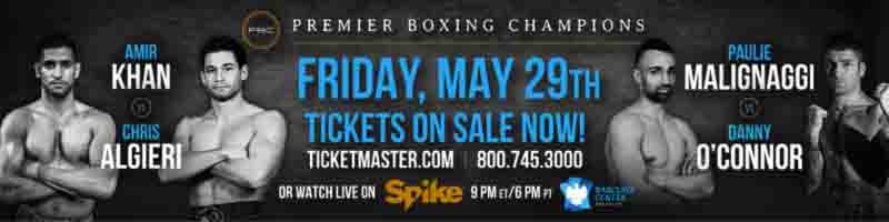 BROOKLYN (April 29, 2015) – Boxing superstar Amir “King” Khan (30-3, 19 KOs) returns to the ring on May 29 to take on former world champion Chris Algieri (20-1, 8 KOs) at Barclays Center in Brooklyn, NY, as the headliner of an exciting Premier Boxing Champions (PBC) card on Spike TV.