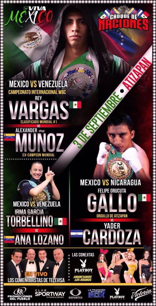 Uno de los más emocionados con el anuncio oficial de la cartelera que se realizará el próximo 3 de septiembre en Atizapán de Zaragoza, Estado de México, fue el primer clasificado y retador oficial en la división supergallo por el Consejo Mundial de Boxeo, Rey Vargas, y no era para menos al ser quien estelarice por primera vez una cartelera boxística en dicho municipio mexiquense.