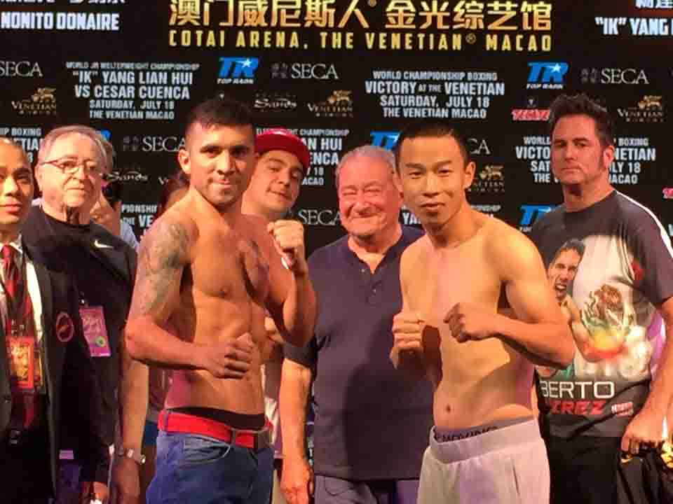 El combate que disputarán el chaqueño César René Cuenca y el chino Ik Yang el próximo sábado 18 de julio en el Cotai Arena del Venetian Resort de Macao, China, por el título mundial Superligero/63,503 kg. de la Federación Internacional de Boxeo (FIB), que se encuentra vacante, irá en vivo a partir de las 10:50 AM de Argentina por la pantalla deTyC Sports, en su tradicional ciclo “Boxeo de Primera”.