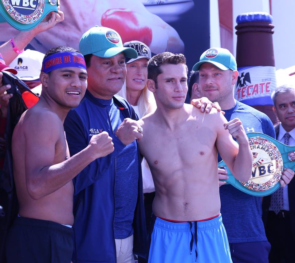 En medio de una auténtica fiesta de aficionados mexicanos y nicaragüenses, se desarrolló el pesaje oficial de la cartelera de este sábado que estelarizarán los campeones mundiales invictos, Carlos Cuadras y Román González, quienes libraron sin mayor problema el compromiso con la báscula y se declararon en perfectas condiciones y ansiosos por subir al ring del mítico Forum de Inglewood, California, en una gala boxística que será transmitida a todo el país por los sensacionales Sábados de Box de Televisa Deportes, gracias al esfuerzo en conjunto de Promociones del Pueblo y del empresario Salvador Briman.