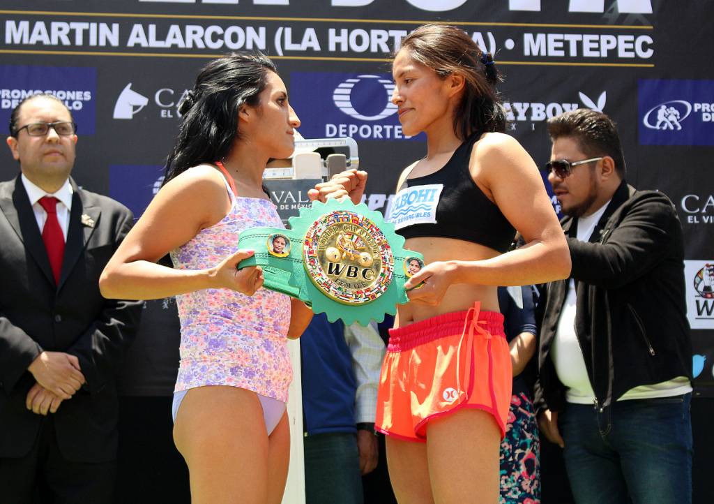 Ibeth “La Roca” Zamora y Esmeralda “La Joya” Moreno, se declararon la guerra abiertamente la tarde de este viernes durante la ceremonia de pesaje oficial que tuvo lugar en el Cerro de los Magueyes en Metepec, Estado de México, y es que estará en juego la corona minimosca y el pase a la Gran Final por el Cinturón Diamante del CMB. Cartelera que presenta Promociones del Pueblo con transmisión exclusiva de Televisa Deportes dentro de los tradicionales “Sábados de Box”.