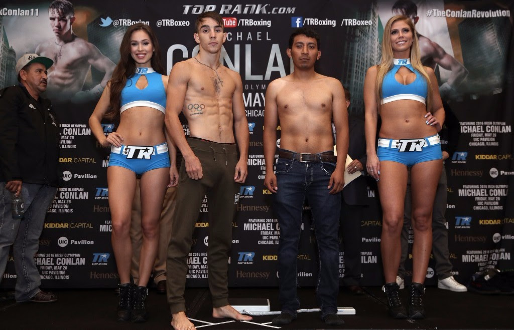 CHICAGO (25 de mayo del 2017) – Estamos a solo 1 día de que ‘La Revolución Conlan’ se apodere de ‘La Ciudad de los Vientos’. El héroe olímpico irlandés Mick Conlan y el invicto contendiente mexicano Alex ‘El Cholo’ Saucedo cumplieron con el requisito de la báscula y están listos para sus respectivos combates que se celebrarán mañana viernes 26 de mayo en la función ‘Solo Boxeo’ desde el UIC Pavilion.