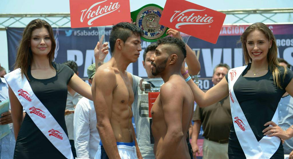 El polémico púgil quien suma una marca de 37 victorias, 13 de ellas antes del límite a cambio de 5 derrotas, escaló la romana con seguridad para registrar un peso de 61.200 kg., dentro del límite de la categoría de las 135 libras; al igual que Marcos, quien registró un tonelaje de 61.000 Kg. también fue declarado en óptimas condiciones médicas para este combate por el supervisor en turno.
