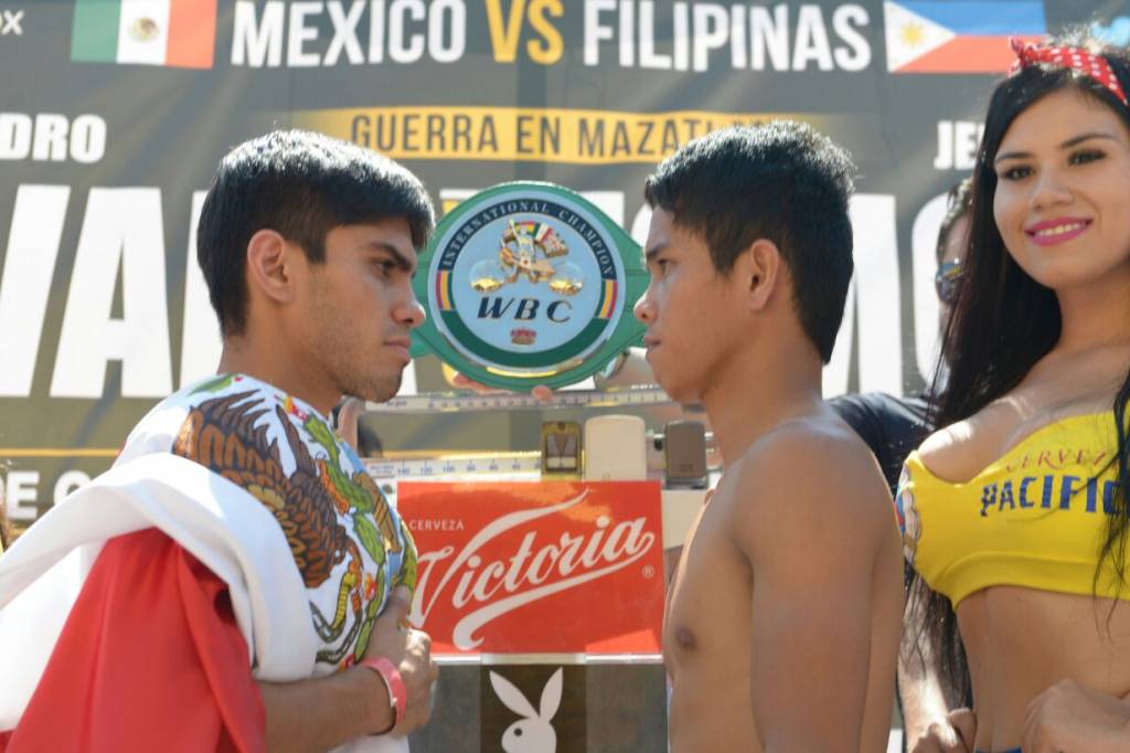 Sin dificultades, el mazatleco Pedro Guevara y el filipino Jerry Tomogdan, cumplieron con el peso requerido previo a su combate de este sábado en el Centro de Usos Múltiples de Mazatlán, con miradas que presagian un tremendo agarrón en cartelera que será transmitida a través de las pantallas de Televisa Deportes completamente en vivo a todo el país.