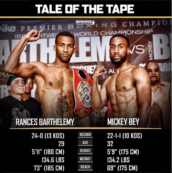 El invicto campeón mundial peso ligero Rances “Kid Blast” Barthelemy (24-0, 13 KOs) hará su primera defensa del título ante el ex-campeón mundial Mickey “The Spirit” Bey (22-1-1, 10 KOs) en el evento principal de Premier Boxing Champions (PBC) por Spike el Viernes, 3 de Junio, desde el Hard Rock Live en el Seminole Hotel & Casino en Hollywood, Florida.
