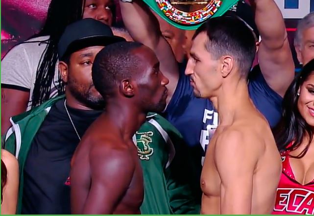 Los dos mejores peleadores superligero del momento, los invictos monarcas Terence ‘Bud’ Crawford y Viktor ‘The Iceman’ Postol se vieron cara a cara previo a subir al ring del MGM Grand Graden Arena, en el pesaje oficial esta tarde.