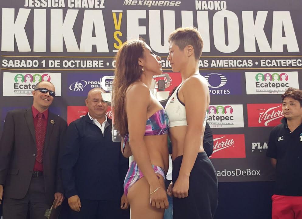 La campeona mundial Yessica “Kika“ Chávez y su retadora la nipona Naoko Fujioka libraron de forma satisfactoria el pesaje reglamentario de cara al explosivo duelo que sostendrán este sábado en el Centro Regional del Deporte de Las Américas en Ecatepec, Estado de México.